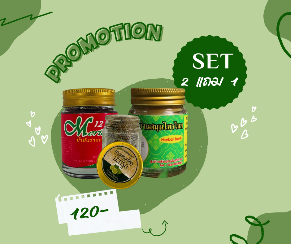 น้ำมันว่านสมุนไพรไทย 60 + น้ำมันว่านสมุนไพร 12 เมอริเดียน 60 + ยาดมสมุนไพร 79